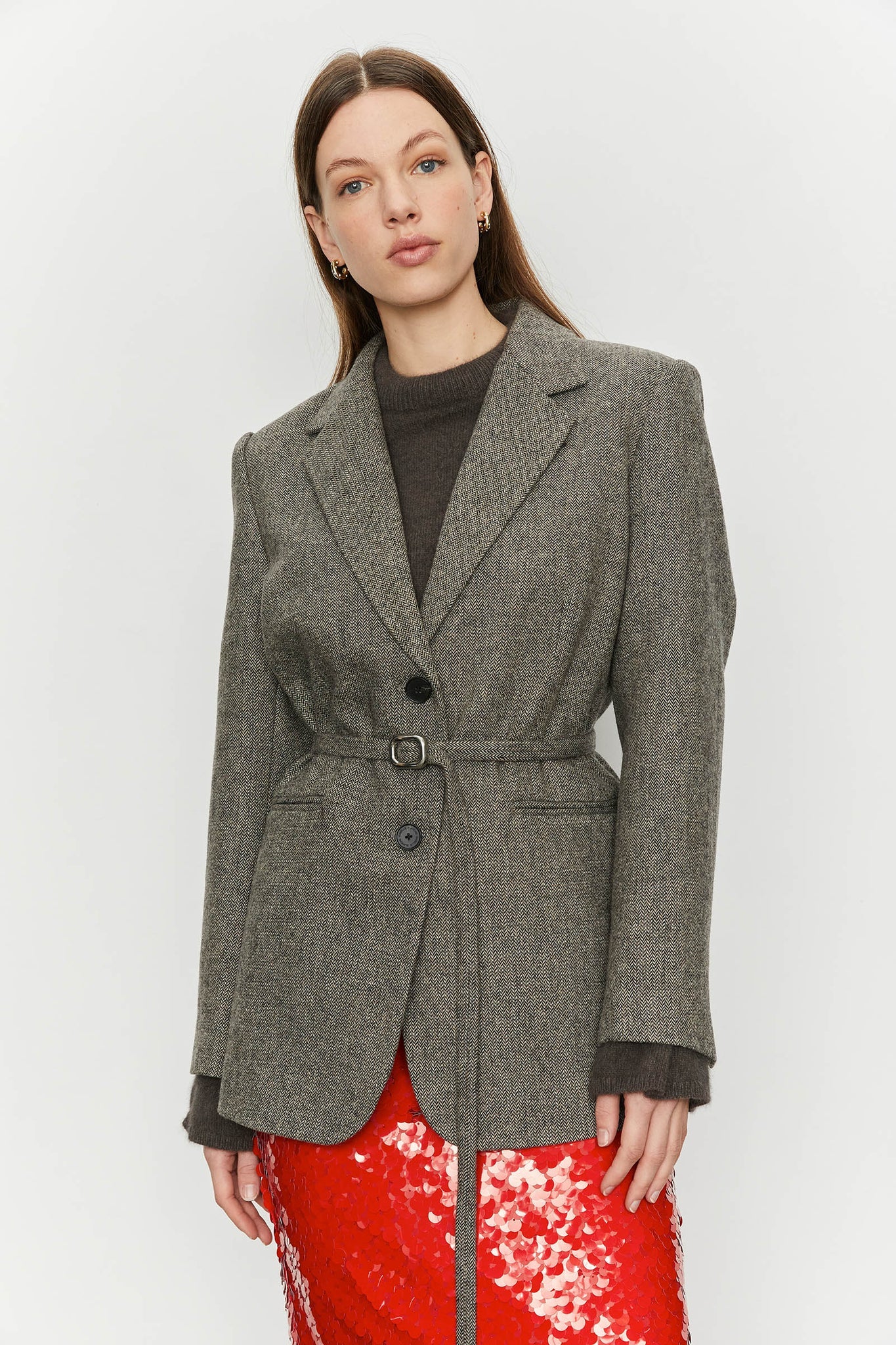 GIACCA MONOPETTO IN LANA CON CINTURA IN VITA. DETTAGLI:La modella indossa la taglia S-40 italiana ed è alta 178 cm COMPOSIZIONE:70% LANA 30% POLIESTERE FODERA 55% POLIESTERE 45% VISCOSA