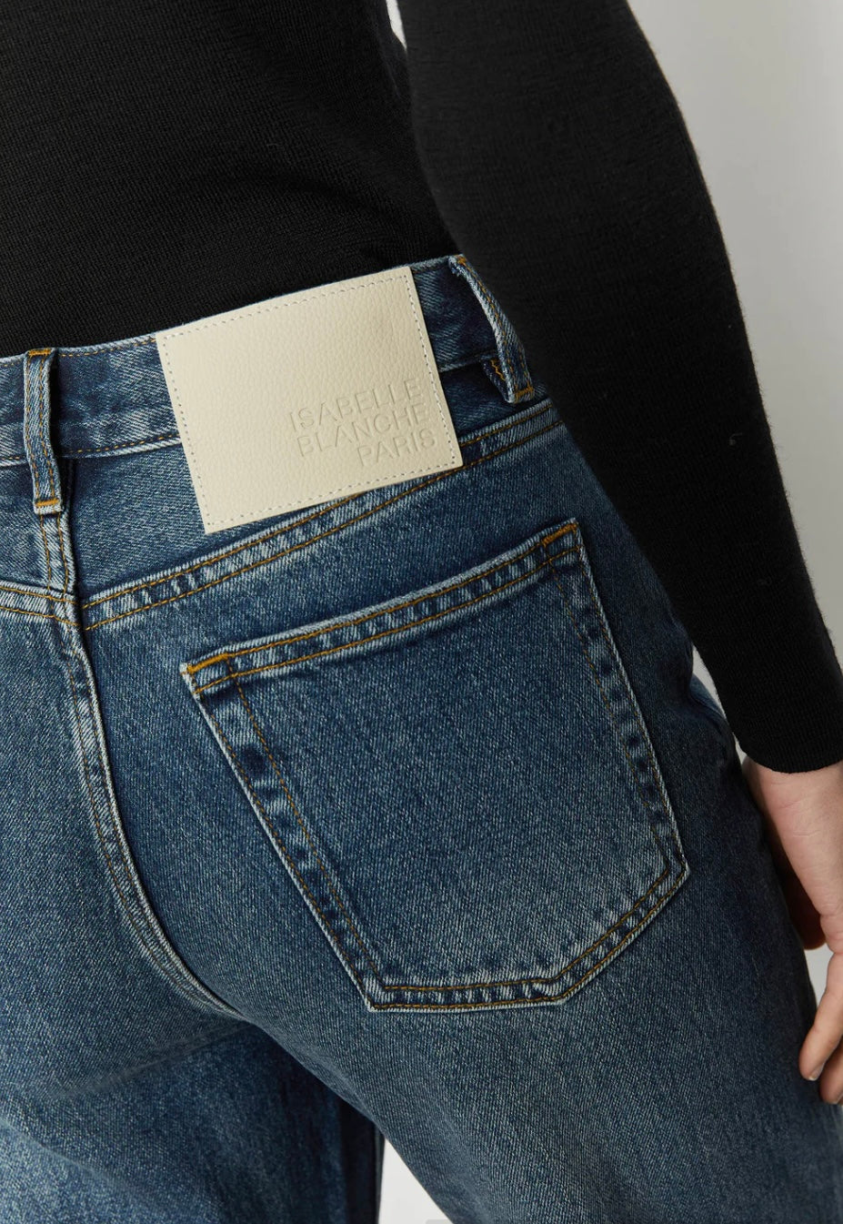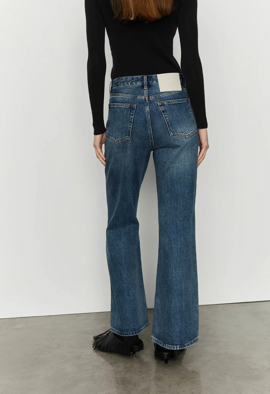 PANTALONI IN DENIM CON GAMBA A ZAMPA. DETTAGLI:La modella indossa la taglia S-40 italiana ed è alta 180 cm COMPOSIZIONE:91% COTONE 8% TENCEL 1% ELASTAN FODERA 100% COTONE