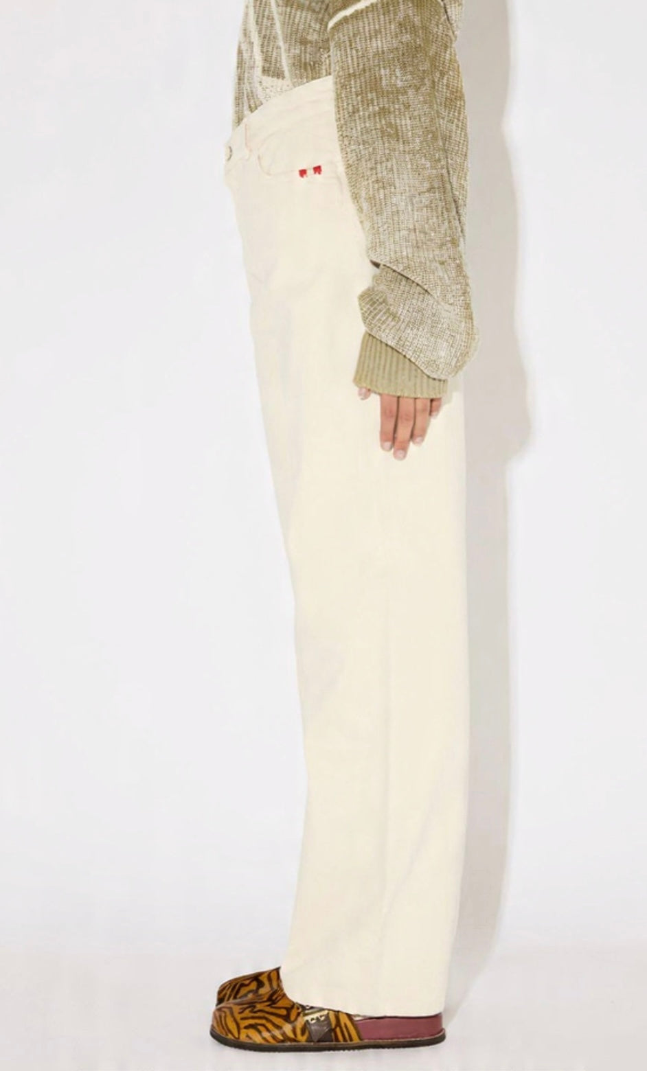 Due tasche sul fronte e due tasche sul retro con ricamo in filo in contrasto.