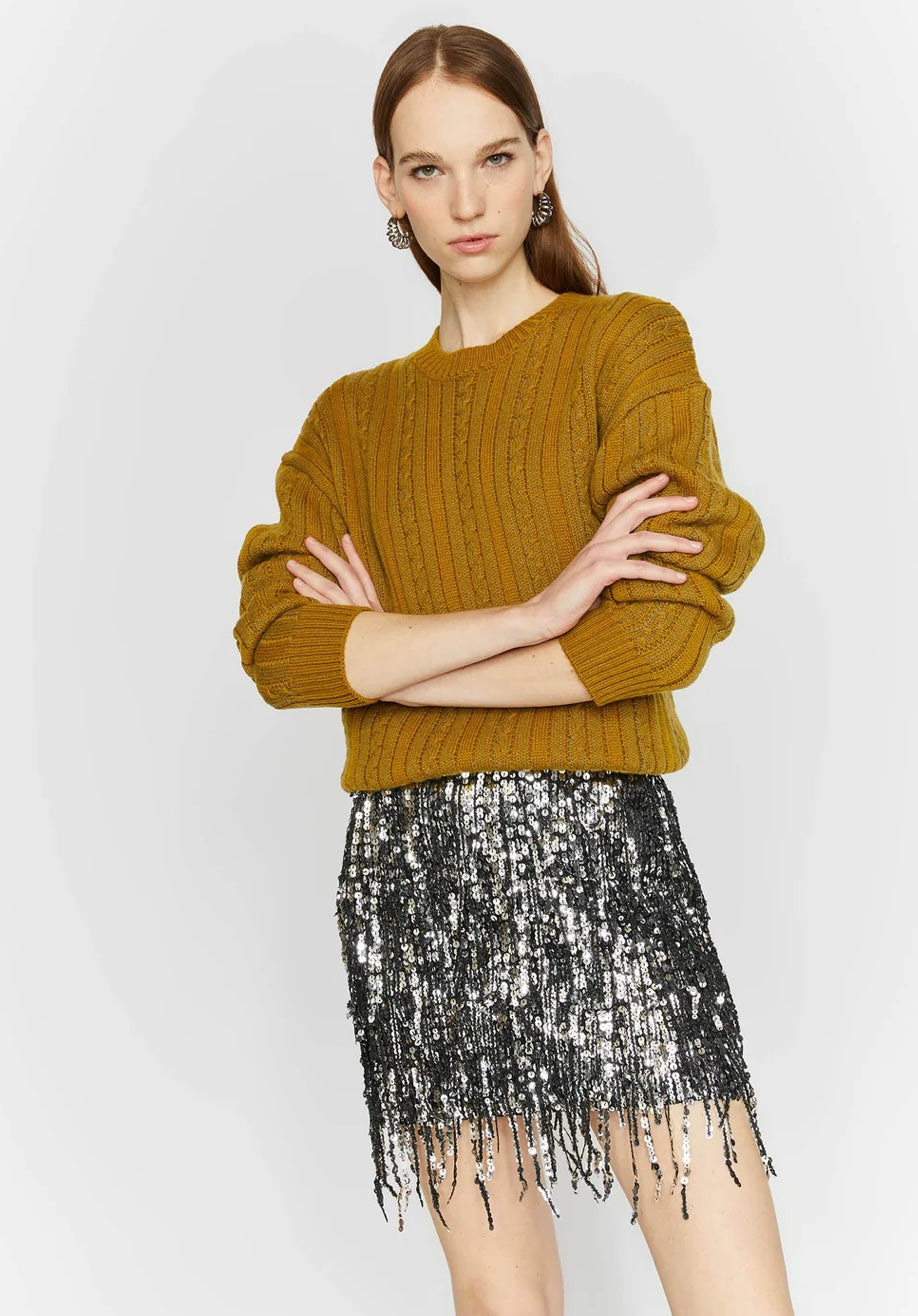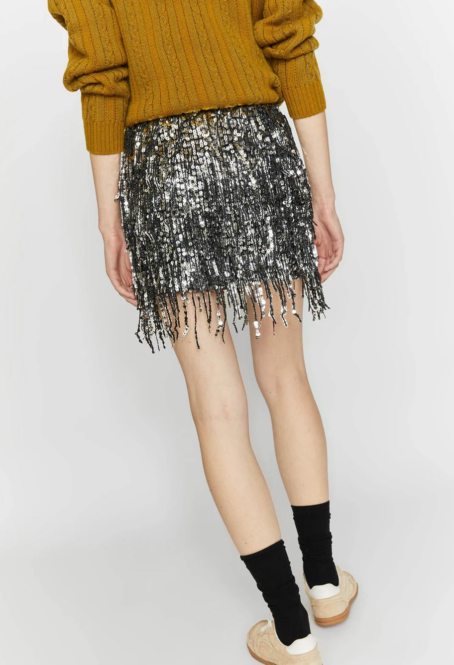 MINIGONNA CON FRANGE DI PAILLETTES. DETTAGLI:La modella indossa la taglia S-40 italiana ed è alta 180 cm COMPOSIZIONE:TESSUTO 1 100% POLIESTERE TESSUTO 2 75% ACETATO 25% POLIESTERE FODERA 96% POLIESTERE 4% ELASTAN